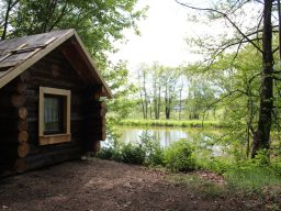 Genieße eine besondere Nacht in unserem kleinen Blockbohlenhaus direkt am Teich – ideal für zwei Personen und umgeben von Natur.